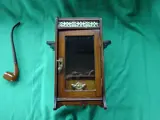 Eikenhouten Rokerskastje met koperen galerij, ca 1900 met lange gebogen pijp.
