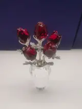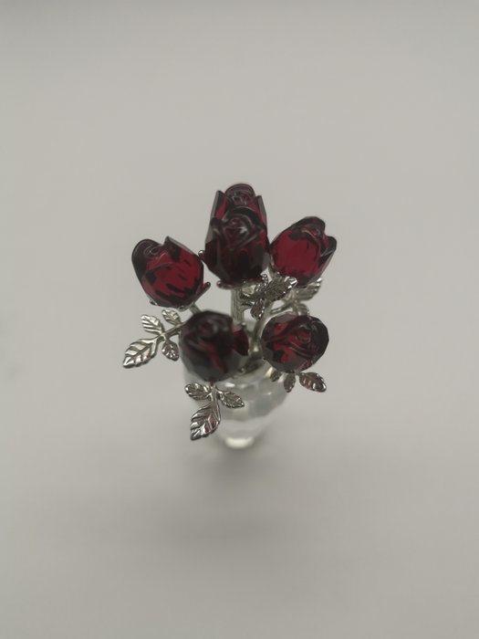 Deze oude Swarovski vaas met rode rozen was onderdeel van de Flower Dreams collectie. Deze prachtige gefacetteerde helderkristallen vaas heeft zes gefacetteerde rozenblaadjes in robijnkristal.