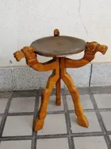 Met de hand gemaakt, oosters. Gesneden. Nomad opvouwbare, draagbare sokkel. Met de hand gesneden en gegraveerde messing tafel. ca 1950-1960.