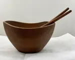 Zeer mooi vormgegeven teakhouten saladeschaal met slacouvert.