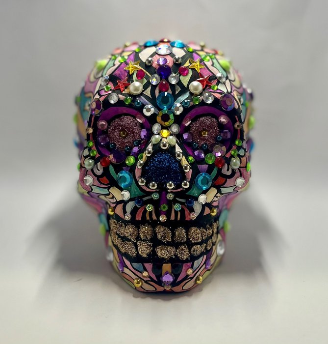 Mexicaanse schedel, "Calaca" volgens de Mexicaanse cultuur wordt elk jaar de dag van de doden gevierd, in tegenstelling tot wat men denkt dat calaca's als vreugdevolle figuren worden beschouwd, verbeelden ze een opgewekte opvatting van het hiernamaals