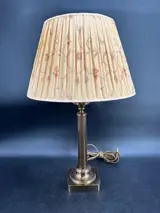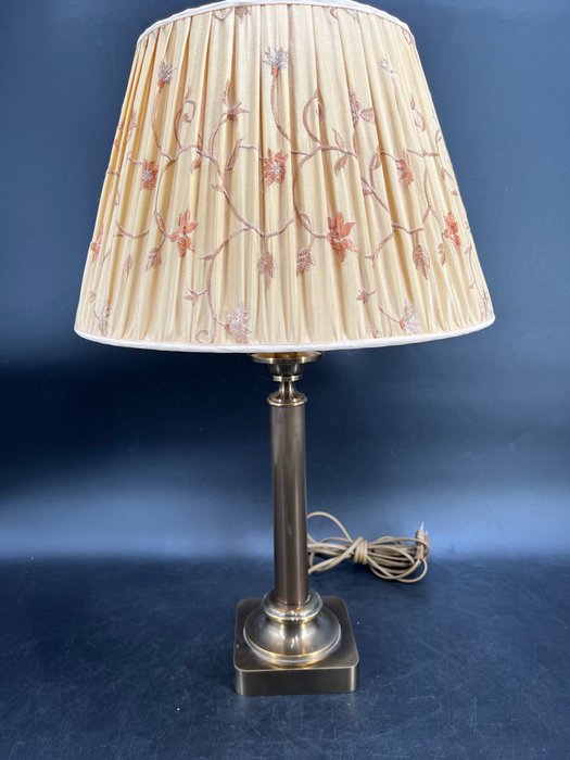 Deze hoge zware lamp is schitterend gedetailleerd, de zijdeglans kolom geeft de lamp een sierlijke uitstraling.
