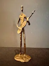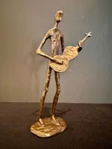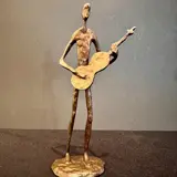 Prachtig massief messing beeld van een gitarist.