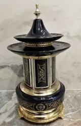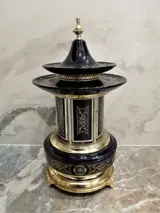 Antieke muziekdoos Pagoda sigarettenkoker, volledig werkend, in goede staat, lichte gebruikssporen.