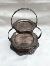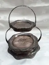 Draagbare dubbele set verzilverde glazenonderzettersvoor 2 soorten glazen betreft diameter bodem. Engelse makelij, periode jaren '20 vorige eeuw in zeer degelijke staat.