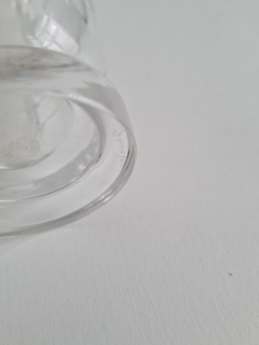 Simon Gate (1883-1945) was een wereldberoemde Zweedse kunstenaar en glasontwerper. Hij won de Grand Prix op de Exposition internationale des Arts Décoratifs et industriels modernes in Parijs in 1925, waarna zijn werk internationaal doorbrak. De term "Zweedse gratie" werd bedacht in Engeland, als de Zweedse versie van Art Deco. Het ontwerp "Duizend ramen met verbluffende optische effecten" is ontworpen in 1932. Zijn voornaam was "Koraal". Deze vaas is in perfecte staat, en we denken dat het een vroeg stuk is. Gewicht: 1022 gram. Referenties: Orrefors handelscatalogus uit 1932 (eerste verschijning) Hoogte 19 cm . Gesigneerd: Orrefors 90395/2