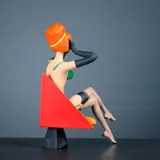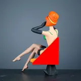 Ditfraaie beeldis van de de kunstenaar Stephan Saint Emett. Dit beeld is bijzonder secuur afgewerkt en zit op een design stoel, wat het nog meer aantrekkelijk maakt. Dit kunstwerk is gemaakt van polyresin. Dit kunstvoorwerp is gemaakt in de negentiger jaren van de vorige eeuw. Het beeld is in nieuwstaat en zit in een ongeopende doos.