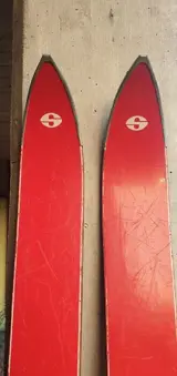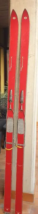 Gezien de tijd die is verstreken, zijn de ski's in uitstekende staat, zowel het bovenste gedeelte als de basis, in een mooie gele kleur.
