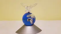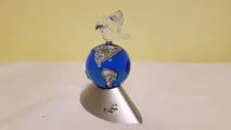 is gemaakt van gekleurd swarovski kristal met een heldere duif