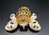 Op de goudkleurige achterzijde het zwaan logo van Swarovski.