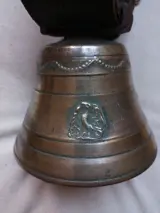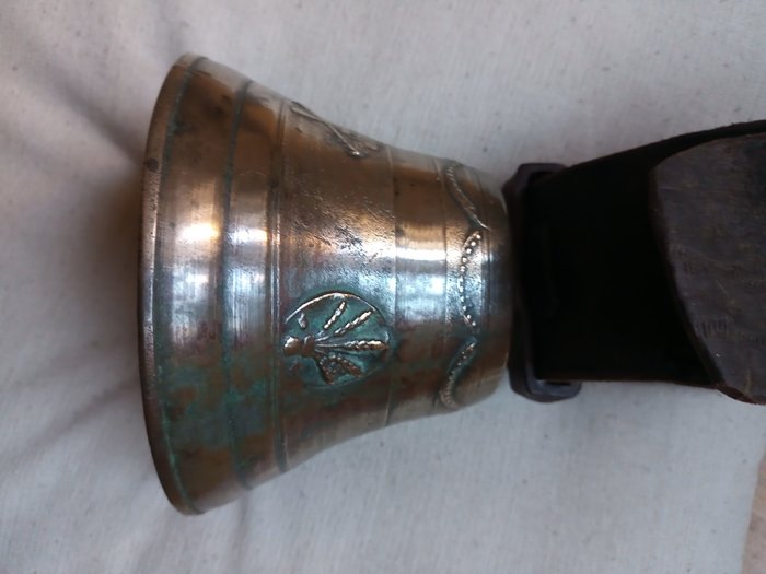 Deze verbazingwekkende bronzen klok is zeer oude prachtige omstandigheden met grote motieven. Een echte Zwitserse koebel met leren riem.