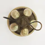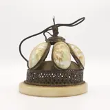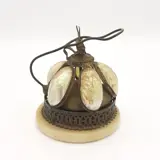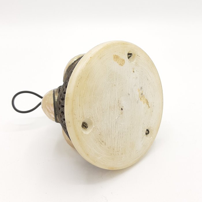 Metaal dat gedeeltelijk zijn vergulding, parelmoer en albasten basis heeft verloren,