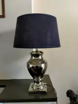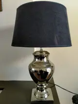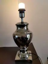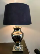 Mooie chroom tafellamp. De hoogte is 53 cm. Op de zwarte lampenkap zitten kleine scheurtjes. Dus bekijk de bijgevoegde foto's voor een goede indruk van deze lamp. Wordt zorgvuldig verpakt en verzonden met track and tracé.