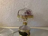 Unieke koperen accenten dragen bijaan dit prachtige lampje, hoogte 32 cm, omtrek kapje 40 cm.