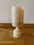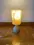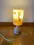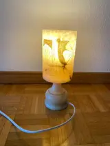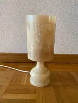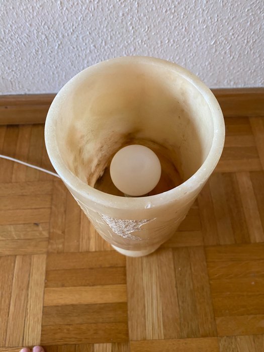 Gegraveerde albast lamp. Gegraveerde met afbeelding van viooltjes. Albast heeft licht oranje/roze kleur en er is één donkere ader te zien.