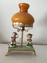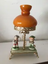 Tafellamp, jaren 60, oranje opaline glas, onyx voet, CapodiMonte keramische beeldjes, messing voet en steunen; een integraal onderdeel van de beschrijving is weergegeven in de hierboven gepubliceerde afbeeldingen. Professionele verzending.