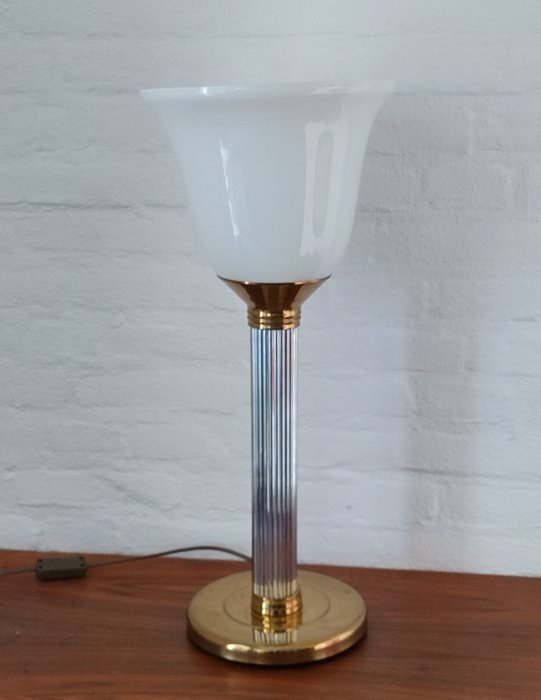 Grote messing tafellamp in de stijl van het Franse merk Mazda .