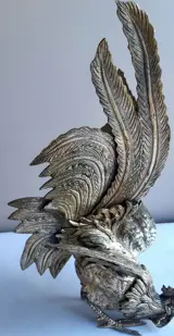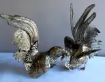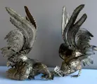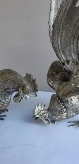 Tafelstuk - vechtende hanen (2) - Verzilverd metaal