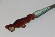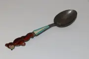 Dit is een uitbundige zilveren USSR-lepel met een charmante beer in dieprood 'gelakt' email. Het zilveren handvat is ook gemaakt met email in wit en aquarelblauw. Ons zeldzame stuk is ook gestempeld met de Russische USSR-testmarkeringen die de zilverfijnheid van 916/1000 delen zilver tonen. Ten slotte is ons item in goede staat, waardoor het een heerlijke en leuke toevoeging is aan de galerij van elke verzamelaar.