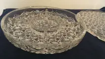 Fantastisch mooi geslepen tapas- hors d'oeuvre schaal (5-vaks) met idem schotel/schaal.
