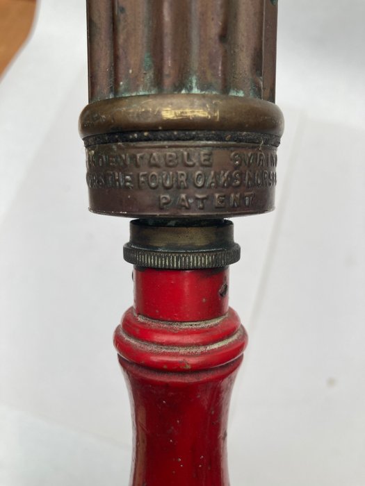 Gemerkt op de hals‘The Undentable Syringe. Inventors. The Four Oaks Nursery Co’.