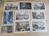 De 9 losse prenten zijn: Ouderkerk, Leiden, Haarlem, Amersfoort, Den Haag, Utrecht,Zierikzee en Groningen.