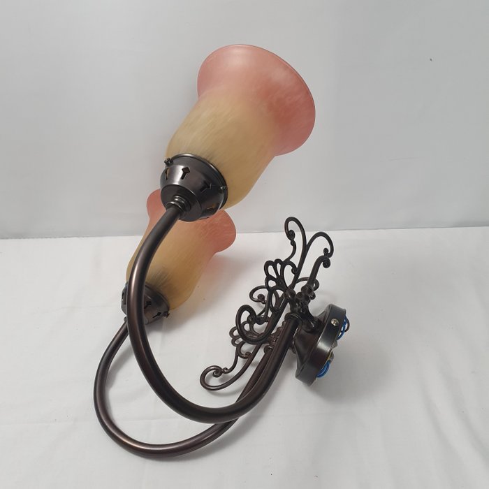 Tweearmige wandlamp - Art Nouveau - Glas, Koper
