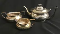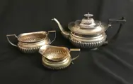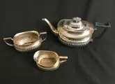 U.K. London , Queen Victoria (1837-1901) , Circa 1890. Een elegant Victoriaans theeservies in Georgische stijl. Elk stuk gemerkt in de basis. Zeer goede staat, zonder deuken, maar met wat slijtage als gevolg van leeftijd en gebruik, glanzend, klaar om te serveren, het zal baat hebben bij een zorgvuldige reiniging en polijstbeurt, na tientallen jaren opslag. Afmeting theepot: 18 x 27 x 14 cm. Totaal Gewicht: 1115 gr.