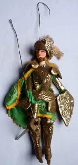 Vintage Siciliaanse Marionet Rod Puppet - Ridder in harnas. Hoogte is 45 cm.