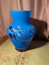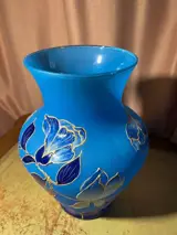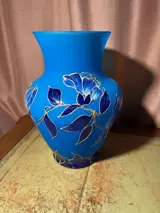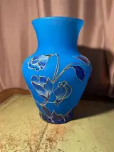 Mooie blauwe vaas met bloemen in de geest van de art nouveau.