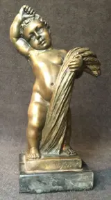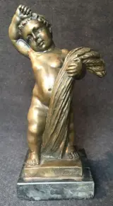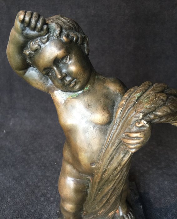 "Oogstkind": gepatineerd bronzen beeldje gesigneerd NOVAK c 1900