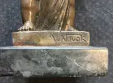 Op vierkante voet, voorzien van de holle signatuur "V. NOVAK" op de voorzijde.