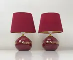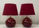 Ze zijn gemaakt van warm-donkerrood glanzend keramiek met goudkleurige randjes. Heel erg leuke en gezellige vintage verlichting en passend in diverse interieurstijlen.