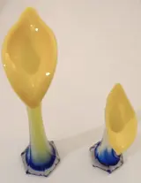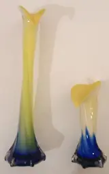 Suggestief paar vazen in zeer fijn glas met polychrome decoratie, volledig met de hand gemaakt door meester-glasblazers.