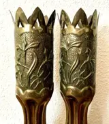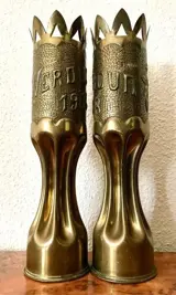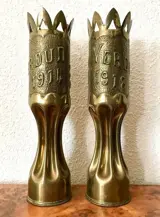 Paar Franse vazen of vazen met de hand gemaakt van twee schelpen, trench art genoemd.