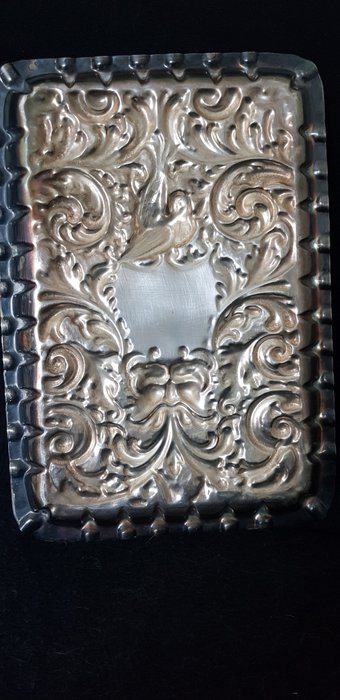 Mooi klein repoussé dienblad in zilver metaal met barokke vogel, acanthus en groteske decoratie met handtekening van Verdi eind 19e eeuw