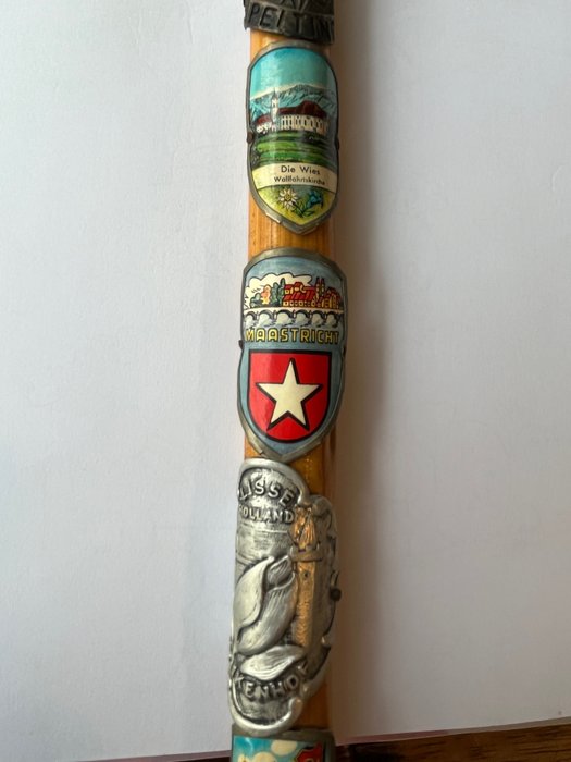 Vroeger kochten wandelaars een insigne of stoknagel van een plaats die ze bezochten en bevestigden ze de insigne op de wandelstok.