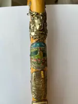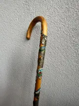 Wandelstok met 20 insignes/medaillons ook wel Stocknagels genoemd.
