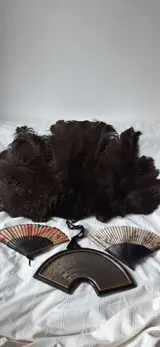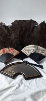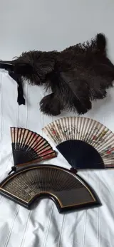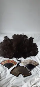 1: grote waaier met veren van zwarte Struisvogel. Omstreeks 1930. Afmetingen 55cm-75cm.