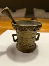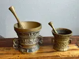 Bronzen vijzel en stamper 2x