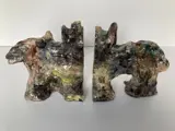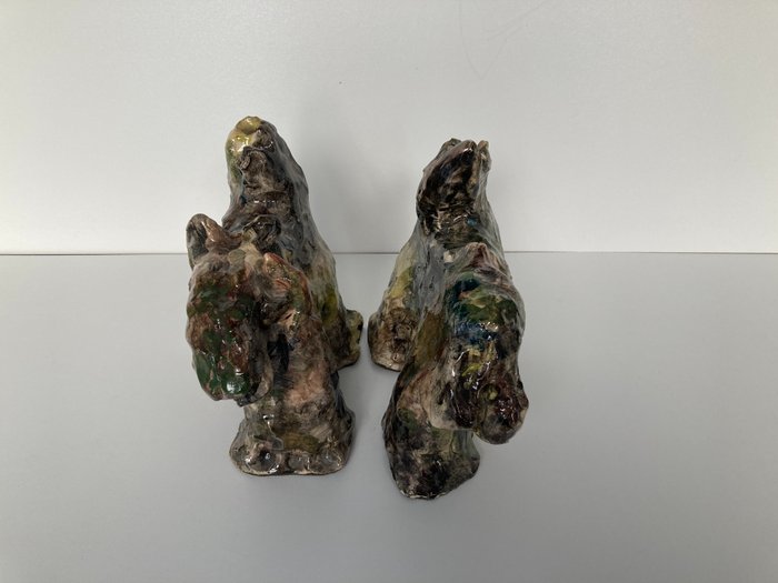 boekensteunen in grillige vormen gemaakt in aardewerk