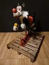 Vintage draaimolen met de afbeelding van Sylvester en Tweety de kat, uit de jaren 70, gemaakt van glasvezel.
