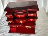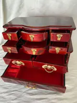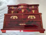 Grote oude Chinese juwelendoos gemaakt van gesneden edel hout en afbeeldingen uit de jaren 40-50, bestaande uit 9 grote vakken aan de binnenkant bekleed met rode zijde, handgrepen aan de zijkanten, brons materiaal, uitgebreide fotoreportage is bijgevoegd om te overwegen, het zal gespecialiseerde verpakking naar bestemming Zendingen buiten de gemeente of zelfstandig niet op Catawiki met een verzendkostenenvelop