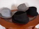Kleine verzameling van 4 vintage herenhoeden uit de jaren 60. Ze zijn in uitstekende staat en van uitstekende kwaliteit, stuk voor stuk compleet met branding binnenin (zie detailfoto's ook met maat/omtrek)