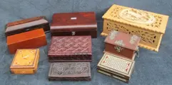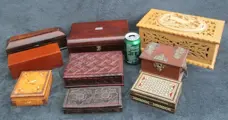 Een verzameling van 9 verschillende vintage houten opberg- en bewaar dozen/boxen