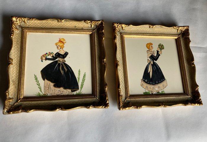 Twee prachtige handbeschilderde keramische tegels omgeven door fijn ingelegde bladgoudlijsten; Lijsten uit de jaren 50; de lijsten meten cm 20 x cm. 20; objecten geschikt voor verzamelaars en liefhebbers van de sector. Omdat het vintage lijsten zijn, vertonen ze de normale tekenen van tijd en gebruik.