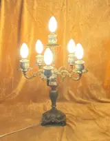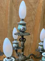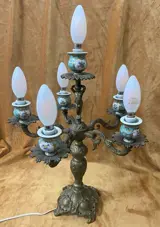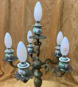 Antieke Vintage kandelaar 6 lichts, met Cupido. Brons, porselein.