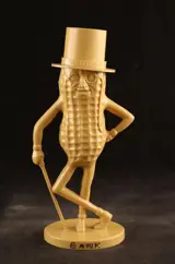 Fraaie Amerikaanse vintage kunststof spaarpot in de vorm van Mr. Peanut, een mascotte die in 1916 gemaakt werd voor de snack firma Planters.