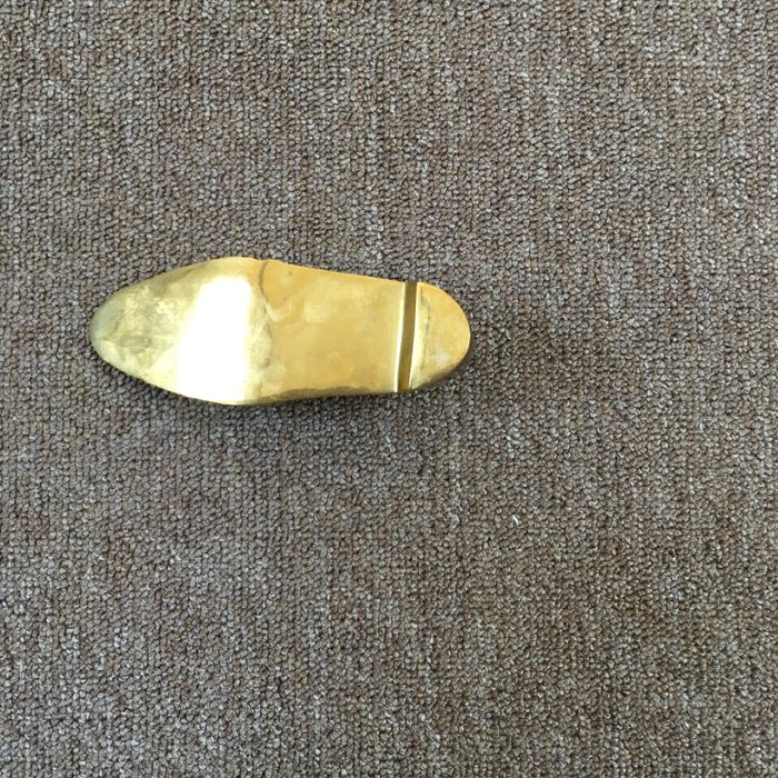 Asbak in de vorm van een koperen schoen. Onberispelijke staat op enkele gebruikssporen na. Kan gebruikt worden als decoratie om een pen op een bureau of bijzettafeltje te leggen. Lengte 15cm. Breedte 5,5 cm. Hoogte 3cm.