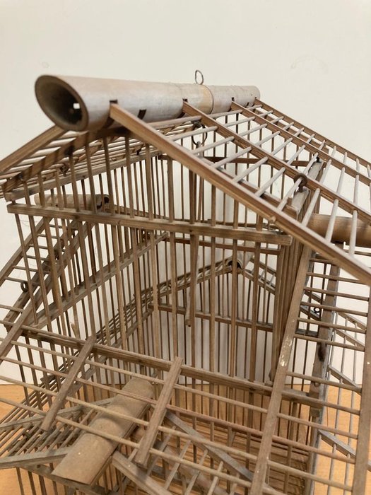Vintage / Brocante Vogelkooi van natuurlijke materialen, zoals bamboe.